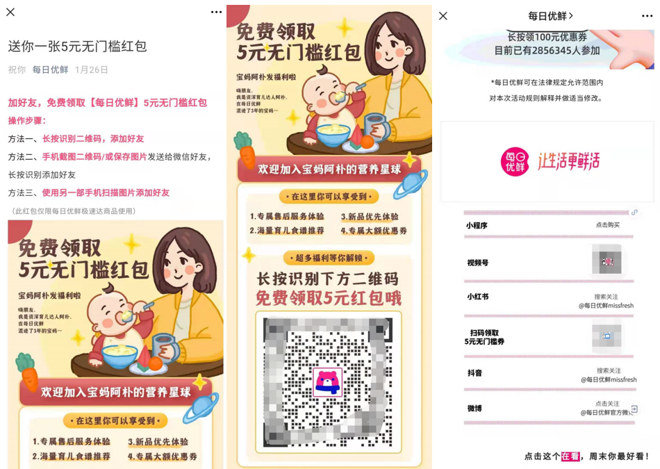 对于每日优鲜来说,获取新流量的机会自然不能放过,但同时还要做好流量的沉淀,把获取到的每一个用户,转化为能长期提供价值的私域流量,才是正解。