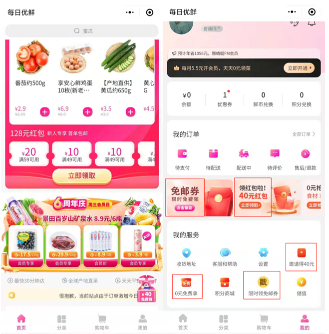 不过,虽然都是优惠券,每日优鲜却设定了两种不同的参与方式。