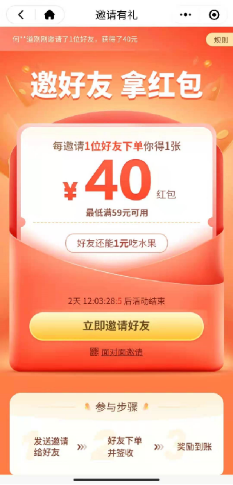 最后,邀好友,拿红包,让老用户把活动链接分享给身边的好友,或者是朋友圈和微信群里,达到引流的目的。