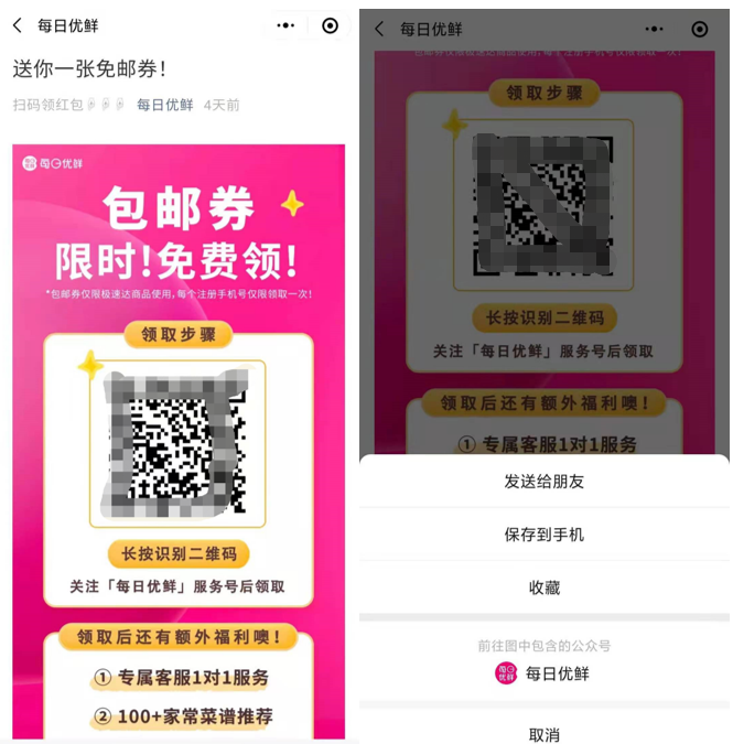 而当用户通过扫码进群之后,还可以领取入群的专属福利「免邮券」。