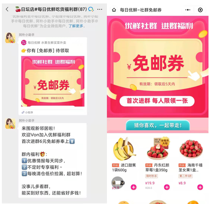 对致力于搭建私域流量池的企业来说,大部分运营转化动作基本都围绕着企业微信在做,每日优鲜也不例外。