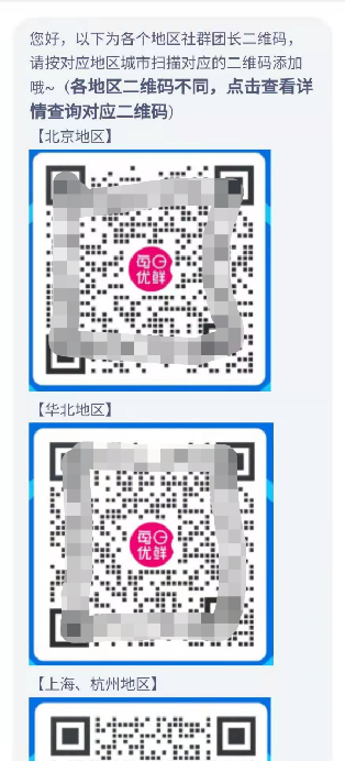 这么做的原因很简单,生鲜电商都是依据自己在当地门店或者前置仓进行商品配送的,地域性服务较强,因此就必须把用户进行地域分布拉群,这样才能根据当地的实际情况,进行更精细化的运营转化。
