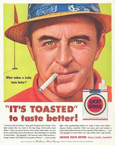 #p#分页标题#e#《广告狂人》中的Don Draper在为 Lucky Strike做创意时,使用了“ It’s Toasted”的概念。Toasted,既有“被烘焙过”的意思,也有“被祝福”之意。以此推广Luckey Strike是被烘焙的,也是被祝福的。